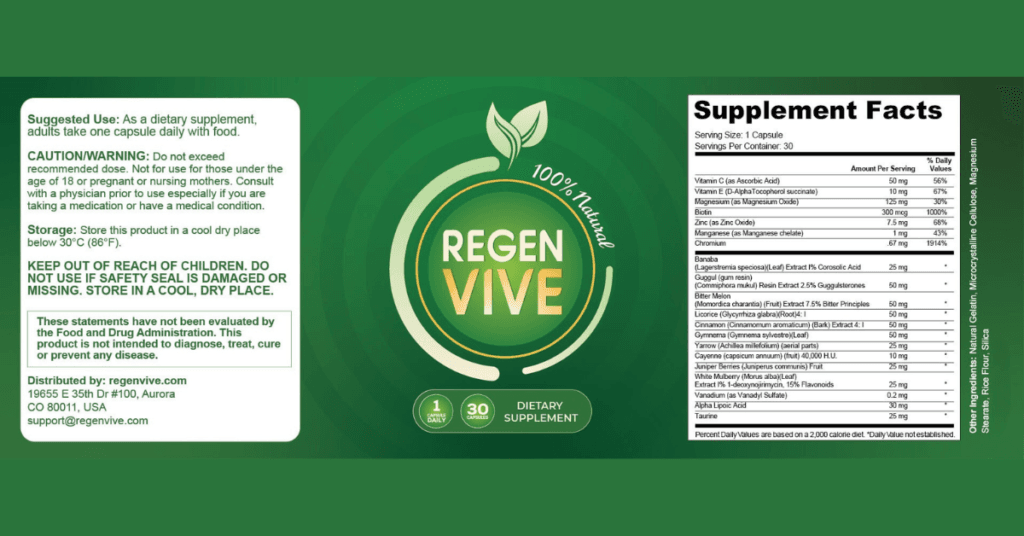 RegenVive is a natural dietary supplement formulated to support healthy blood sugar levels, metabolic balance, and daily energy.